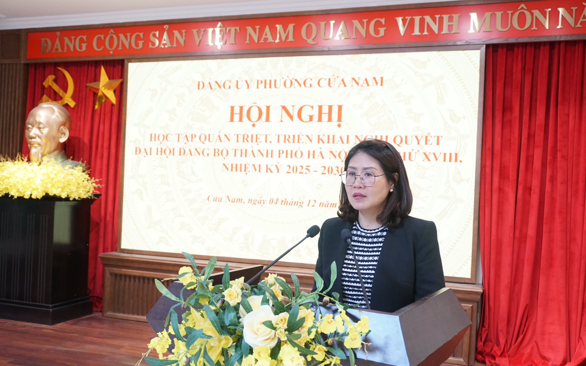 Thực hiện Kế hoạch số 02-KH/TU ngày 06/11/2025 của Ban Thường vụ Thành uỷ Hà Nội, chiều ngày 04/12/2025, Đảng bộ phường Cửa Nam tổ chức Hội nghị học tập, quán triệt, triển khai thực hiện Nghị quyết Đại hội lần thứ XVIII Đảng bộ Thành phố Hà Nội nhiệm kỳ 2025 - 2030 bằng hình thức học trực tiếp và trực tuyến qua Zoom tới 70 tổ chức Đảng trực thuộc với 106 điểm cầu và hơn 3.800 đảng viên tham dự.