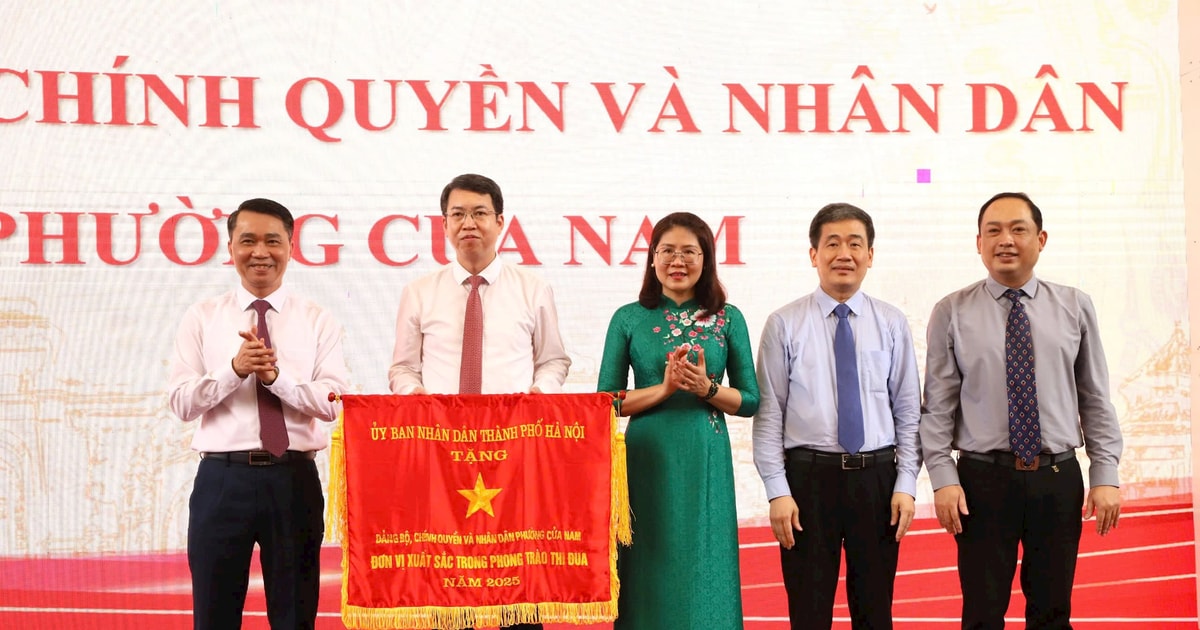 Đảng bộ, chính quyền và nhân dân phường Cửa Nam nhận "Cờ đơn vị xuất sắc trong phong trào thi đua" năm 2025. Ảnh: PV