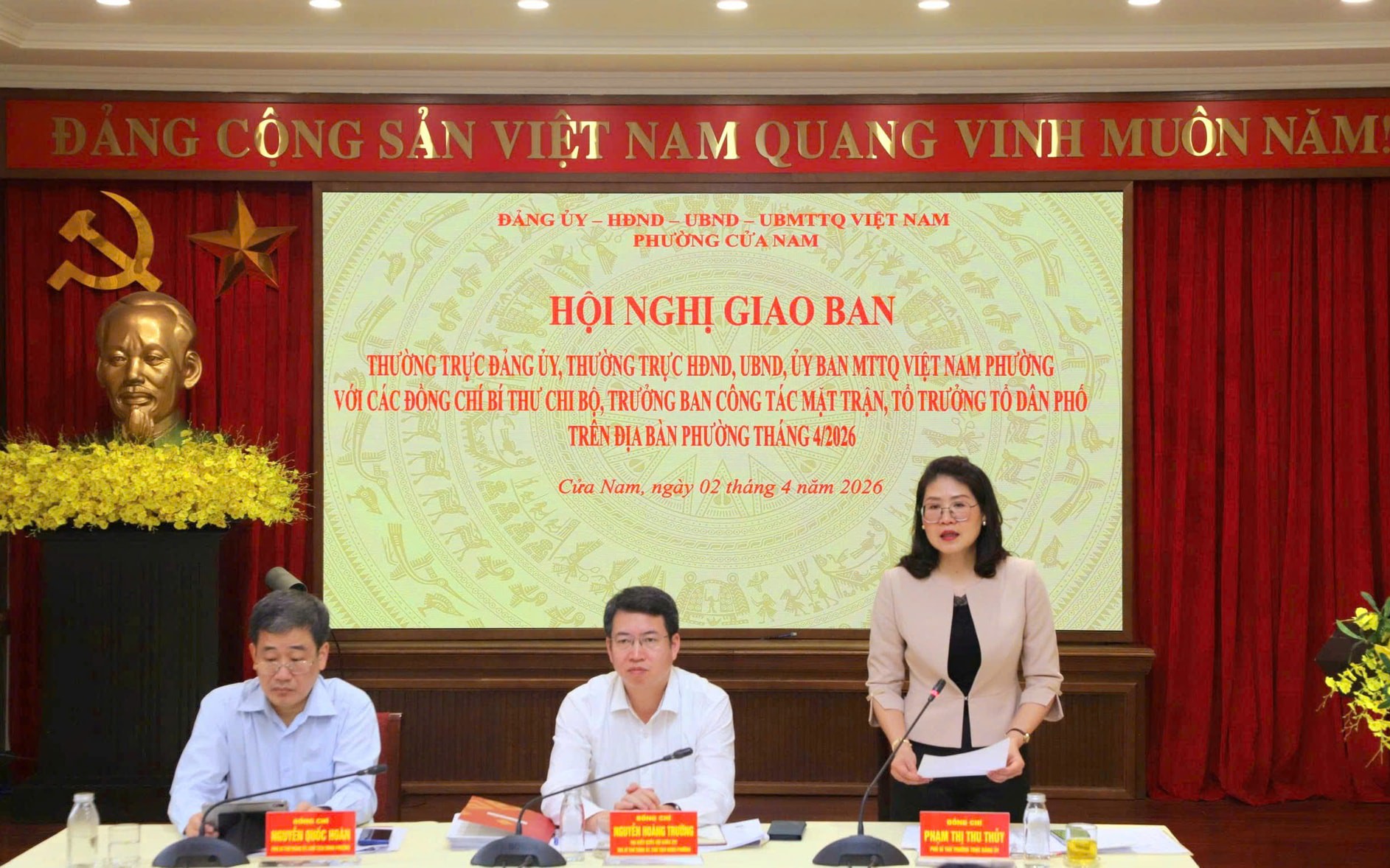 Đánh giá kết quả quý I-2026, Bí thư Đảng ủy phường Cửa Nam khẳng định, phường đã hoàn thành tốt các chỉ tiêu phát triển kinh tế - xã hội; nổi bật là công tác thu ngân sách đạt kết quả tích cực, tạo nền tảng quan trọng cho việc thực hiện các nhiệm vụ năm 2026. Công tác chính trị, tư tưởng, xây dựng Đảng, xây dựng hệ thống chính trị được triển khai đồng bộ, hiệu quả, đặc biệt là việc tổ chức thành công cuộc bầu cử đại biểu Quốc hội khóa XVI và đại biểu HĐND các cấp nhiệm kỳ 2026 – 2031, bảo đảm dân chủ, an toàn, đúng quy định, với tỷ lệ cử tri tham gia cao.