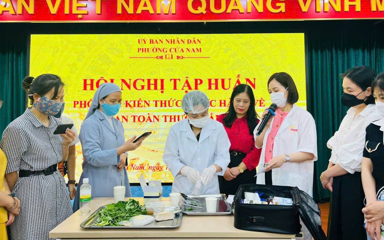 Đặc biệt, Trạm Y tế phường Cửa Nam đã trực tiếp hướng dẫn một số kỹ thuật xét nghiệm nhanh ATTP đơn giản, dễ áp dụng tại y tế trường học, qua đó nâng cao năng lực tự kiểm soát và quản lý bếp ăn tập thể.